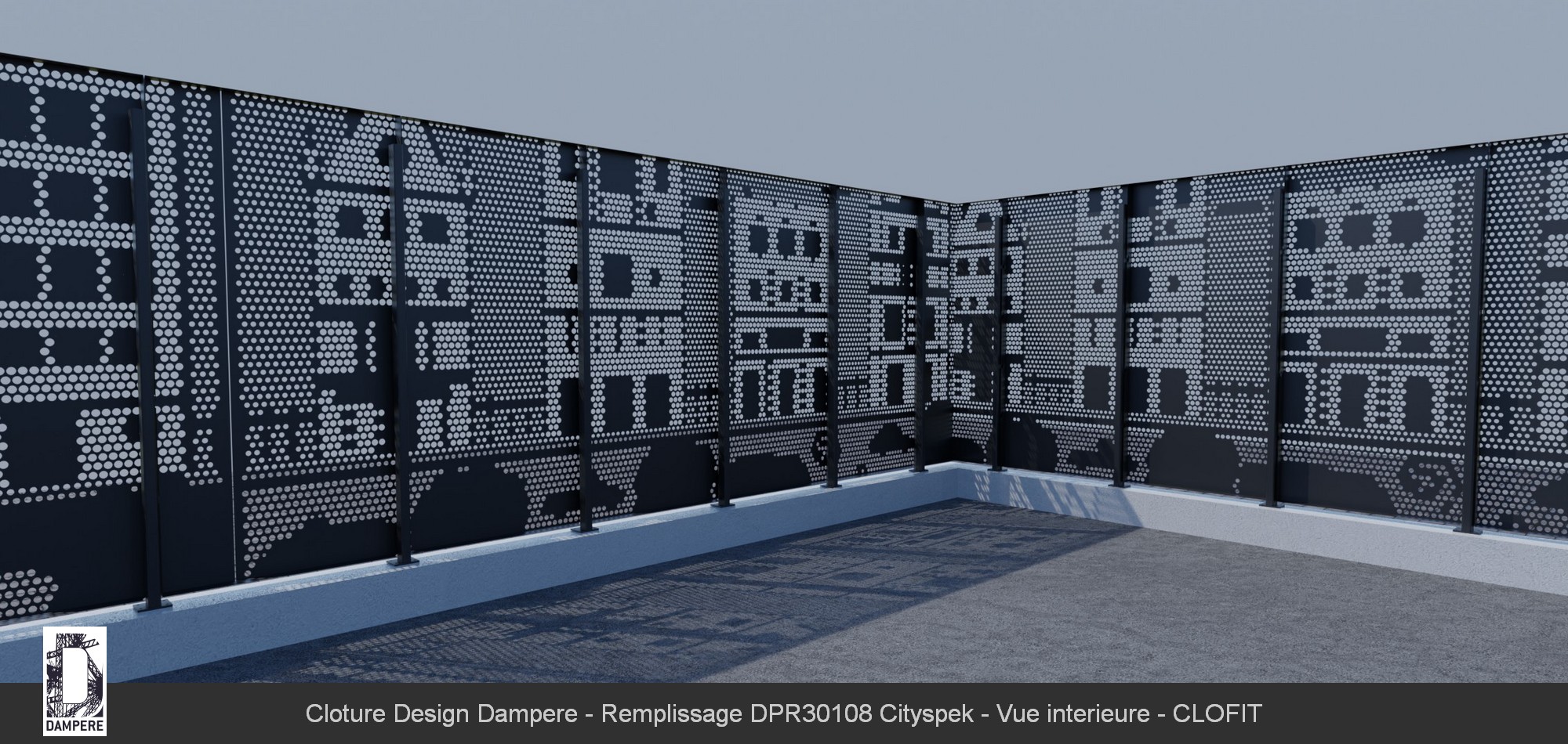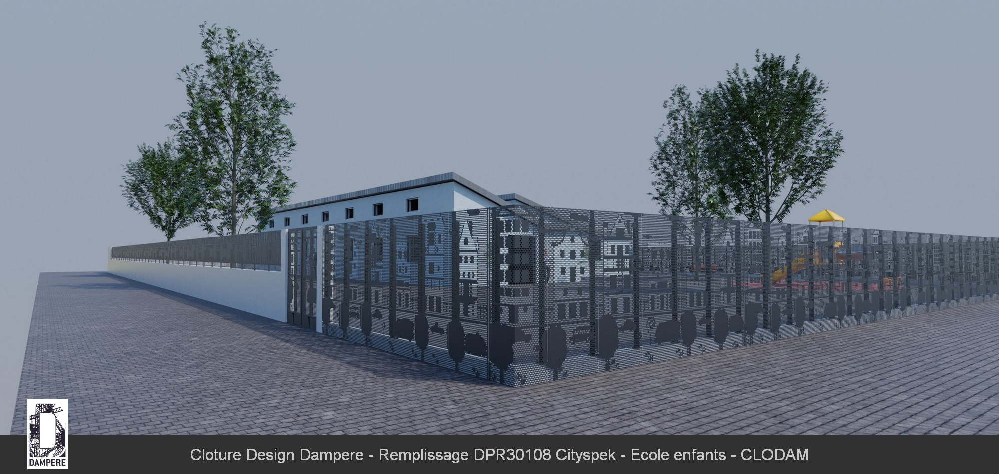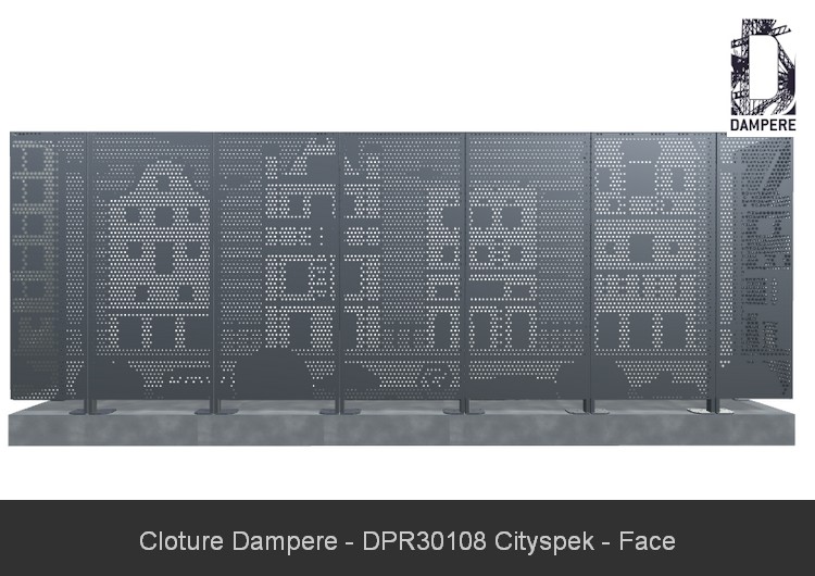 La clôture Cityspek DAMPERE est particulièrement adaptée à une variété de lieux qui nécessitent à la fois sécurité et esthétique. La clôture décorative Cityspek peut être installée autour des écoles primaires, crèches, et autres établissements éducatifs. Grâce à son motif ludique de scènes urbaines et de véhicules, elle crée un environnement sécurisé tout en stimulant l’imagination des enfants. Son design solide et perforé permet également de garantir un haut niveau de sécurité tout en apportant une touche décorative agréable. Cityspek trouve aussi sa place dans les parcs urbains et jardins publics. Le motif urbain perforé permet de s’intégrer harmonieusement dans les espaces verts tout en ajoutant une note contemporaine et artistique. Cette clôture peut également être installée dans des résidences privées ou des ensembles d’appartements pour délimiter des espaces communs comme des jardins, des piscines ou des aires de jeux. Elle peut être utilisée autour de terrains de sport, des gymnases ou des stades, où la clôture doit à la fois assurer la sécurité et offrir une esthétique moderne. Le motif en microperforation pourrait également contribuer à identifier visuellement le lieu et le différencier de manière créative. Enfin, elle est parfaite pour des aires de jeux, où le motif urbain peut s’harmoniser avec les structures de jeux pour enfants, ajoutant à la fois sécurité et décor visuel stimulant.Détails techniques