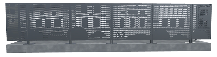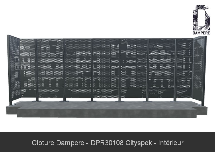 L'usage du motif CITYSPEK en panneau de clôture décoratif se fait sur un panneau en Acier Galvanisé d'épaisseur 2 mm sur une hauteur de 1.80 m sera conseillée. Cette combinaison de la hauteur du poteau et l'entraxe entre panneau donneront une bonne résistance de la clôture décorative, que vous adapterez à l'ancrage au sol selon la zone de vent et la sollicitation urbaine de la clôture. Le passage d'air faible augmente la prise au vent dans les régions fortement exposées.Effet produit