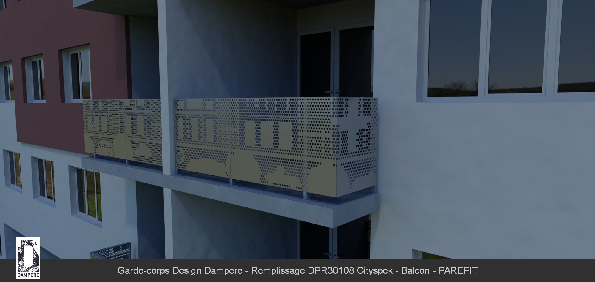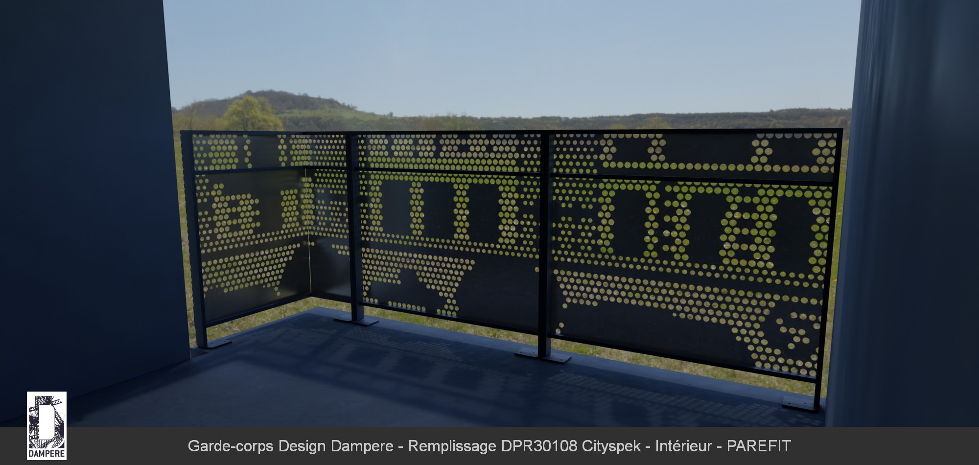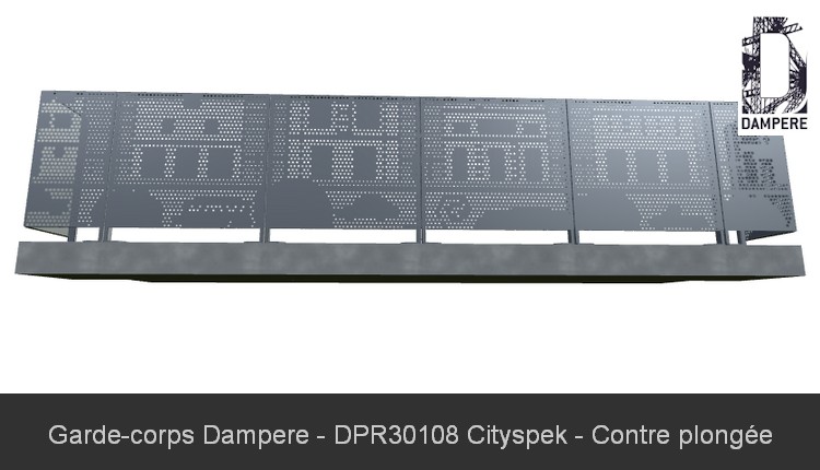 Le garde-corps en tôle perforée Cityspek DAMPERE est un choix idéal pour des balcons résidentiels, alliant sécurité et esthétisme contemporain. Le motif urbain perforé, qui représente des scènes de ville avec des immeubles et des véhicules, apporte une touche de modernité et de dynamisme à l’espace. Ce motif se fond parfaitement dans les environnements urbains, où il contribue à renforcer le style architectural du bâtiment tout en offrant un espace protégé. Grâce à son design perforé, le garde-corps Cityspek permet de filtrer la lumière de manière subtile, créant des ombres délicates sur le balcon tout au long de la journée. Cela donne un effet visuel changeant et vivant, qui anime l’espace sans jamais le surcharger. La perforation est également pensée pour garantir une sécurité optimale, en empêchant les chutes tout en offrant une transparence partielle pour conserver une vue dégagée vers l’extérieur. Ce garde-corps trouve également sa place dans des résidences privées ou des ensembles d’appartements où il peut délimiter des espaces tels que des jardins communs, des piscines ou des terrasses. Il est particulièrement apprécié pour son effet décoratif, qui transforme le balcon en un élément visuellement captivant. Sa solidité et son design ludique en font un excellent choix pour des projets résidentiels visant à combiner protection et esthétique moderne.Effet produit