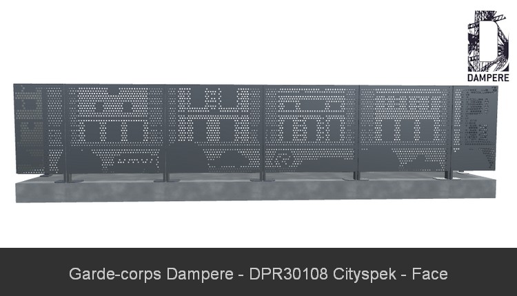 Le garde-corps Cityspek DAMPERE dépasse largement sa fonction protectrice pour devenir un véritable élément de design urbain imaginatif, idéal pour des environnements tels que des balcons résidentiels ou publics. Grâce à son motif de tôle perforée, il évoque une scène urbaine stylisée, où les silhouettes d’immeubles et de véhicules se fondent dans un dessin poétique et minimaliste. Même avec une hauteur limitée à 1 mètre, le motif conserve son impact visuel : les formes partiellement coupées des bâtiments et voitures invitent l’observateur à compléter mentalement cette scène de ville, créant ainsi un effet narratif captivant. Le contraste entre les formes pleines et les perforations assure non seulement une protection visuelle, mais également une sensation de légèreté et d’ouverture pour les utilisateurs du balcon. Le motif Cityspek, par son caractère ludique et abstrait, offre une touche décorative unique tout en garantissant la sécurité des balcons et espaces ouverts. Les enfants et adultes peuvent se projeter dans cette scène urbaine simplifiée, où les fenêtres des immeubles et les formes géométriques des bâtiments deviennent des portails vers l'imaginaire urbain. Cela fait du garde-corps non seulement un élément pratique, mais également un support d’évasion et d’esthétique contemporaine. En s'intégrant harmonieusement dans des environnements urbains, résidentiels ou même naturels, le garde-corps Cityspek allie fonctionnalité, sécurité et esthétisme moderne, transformant les balcons en espaces sécurisés tout en les enrichissant d’une dimension artistique et poétique.Usages
