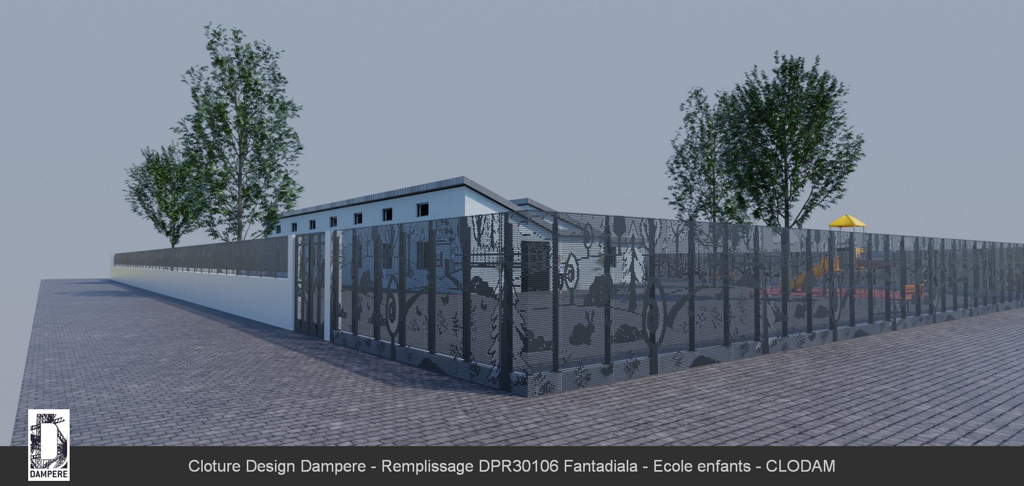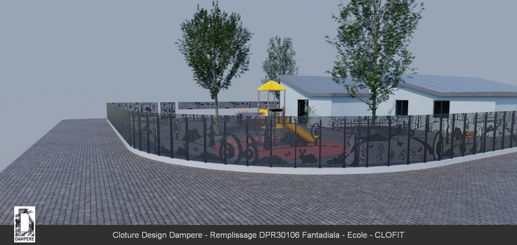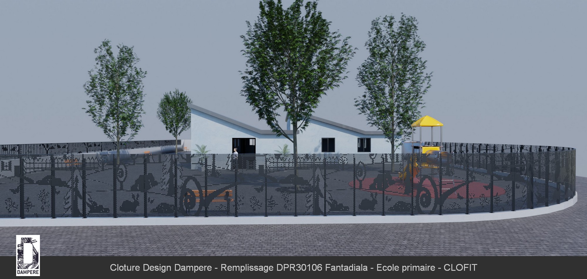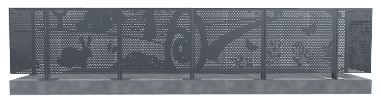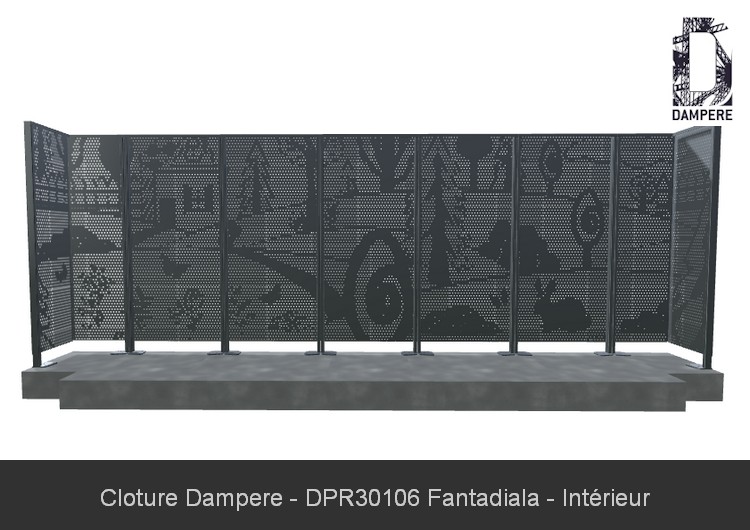 La clôture Fantadiala est un choix polyvalent pour divers usages en zone urbaine. Son motif ludique et esthétique, avec des perforations rondes dessinant des scènes enfantines, la rend idéale pour protéger et délimiter des parcs et jardins tout en conservant une certaine transparence lumineuse. Elle peut également servir à occulter les aires de jeux, garantissant la sécurité des enfants tout en créant un espace visuellement agréable pour les passants. La protection des écoles maternelles et des zones scolaires est un autre usage clé de la clôture Fantadiala. Grâce à sa conception, elle agit comme un obstacle visuel tout en respectant les exigences de sécurité imposées par des programmes comme le plan Vigipirate. Elle permet de masquer les mouvements des enfants et de dissuader les intrusions tout en maintenant une esthétique ludique et adaptée à ces environnements. Dans un cadre plus général, la clôture Fantadiala peut également être utilisée pour séparer des zones publiques, comme des promenades ou des places urbaines, créant un espace sécurisé tout en conservant une dimension esthétique et narrative qui s'intègre parfaitement à des environnements contemporains, avec son effet ludique et pédagogique.Effet produit