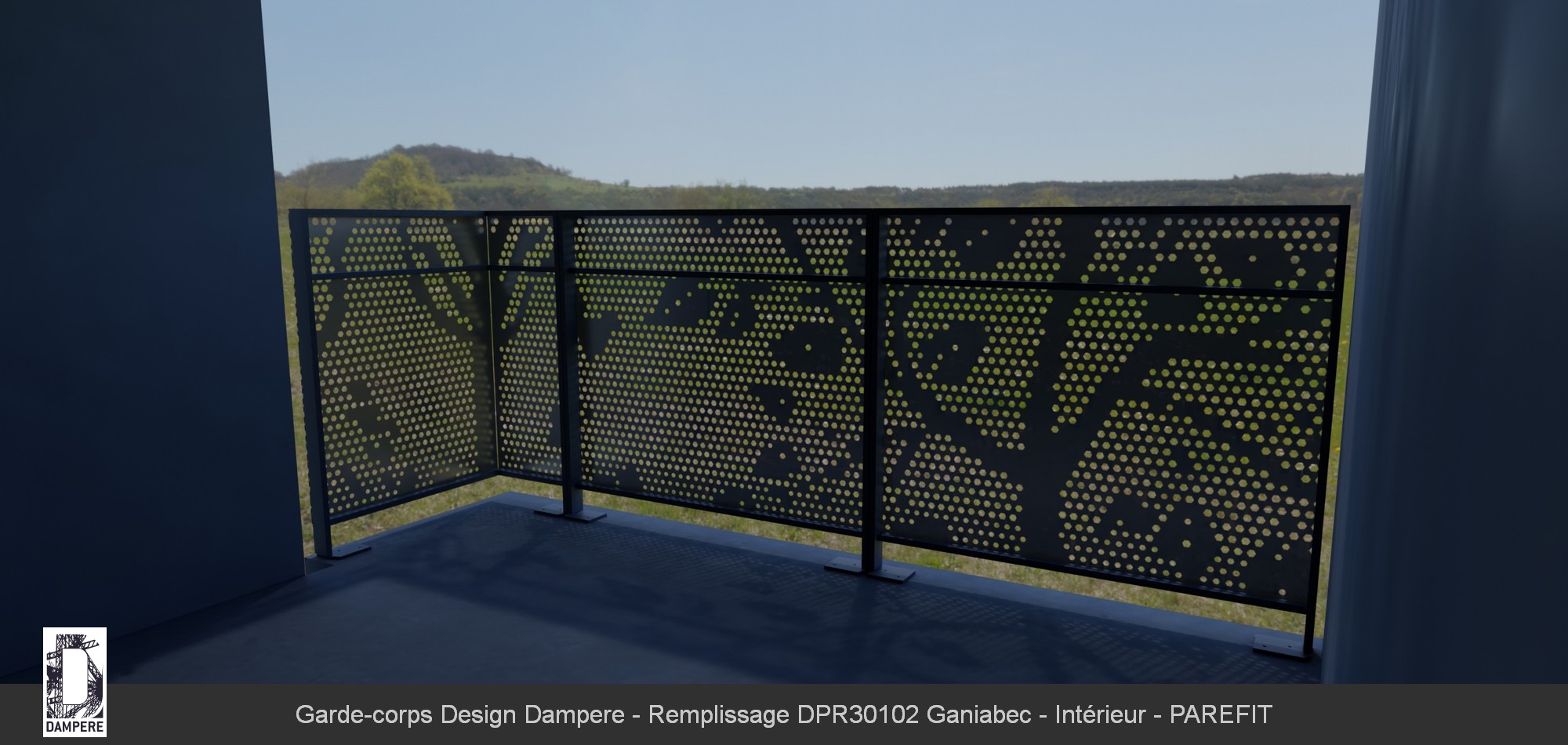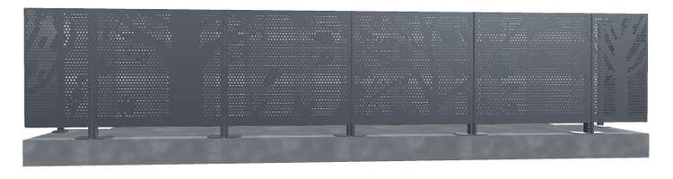 Le garde-corps en tôle perforée décorative Ganiabec se distingue par son effet graphique subtil, qui oscille entre transparence et opacité, selon la distance d'observation et l'angle de vue. De près, les perforations rondes et les motifs naïfs représentant des arbres, plantes, et oiseaux deviennent des éléments clairement distincts, offrant une texture organique et détaillée. Les formes arrondies, bien définies, créent un jeu de transparence partielle, permettant à la lumière de filtrer à travers les découpes tout en préservant une certaine intimité. À cette distance, le regard perçoit la richesse du motif, qui capte et adoucit la lumière, tout en projetant des ombres mouvantes sur les surfaces environnantes, renforçant la dimension dynamique de l’espace. De loin, l'effet visuel se transforme, et le motif ajouré apparaît plus homogène. Les formes perforées se fondent en une texture plus continue, créant une impression d'opacité délicate qui bloque les détails précis sans totalement masquer la vue. Le garde-corps décoratif semble se transformer en une résille aérienne, où l'alternance de pleins et de vides apporte une légèreté visuelle. Cette transparence partielle maintient une connexion visuelle vers l'extérieur, tout en garantissant la protection et la discrétion nécessaire pour les occupants du balcon.Le conseil de l'équipe