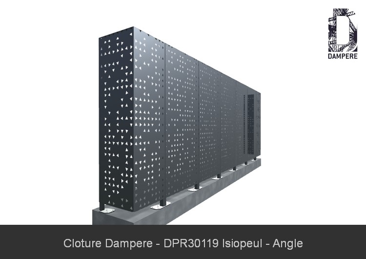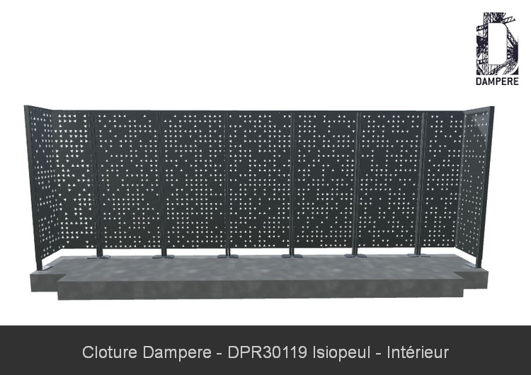 L'usage du motif Isiopeul en panneau de cloture occultant convient sur un panneau en Acier Galvanisé d'épaisseur 2 mm avec pliage sur une hauteur de 180 cm. Cette disposition de la hauteur du poteau et l'entraxe entre panneau de 80 cm donnera une bonne résistance de la cloture occultante, que vous adapterez au scellement béton au sol selon la contrainte de la zone de vent et la solicitation urbaine de la clôture. Le faible degré de transparence a pour effet d'augmenter la prise au vent, donc ajouter des jambes de force ou scellement plus important dans les zones fortement exposées aux rafales des vents. En cas de besoin, prévoir une peinture anti-graffiti pour faciliter le nettoyage en cas de vandalisme.Effet produit