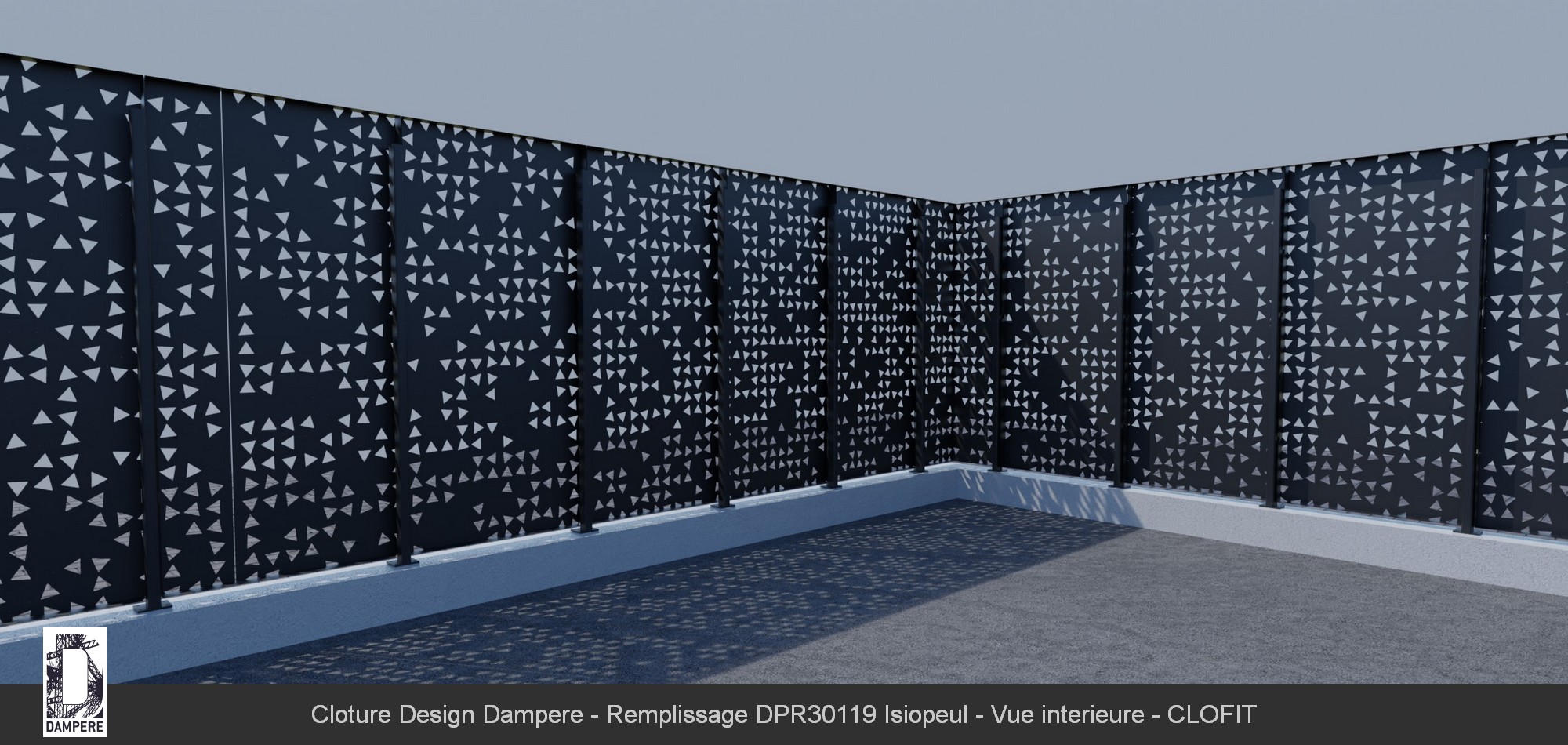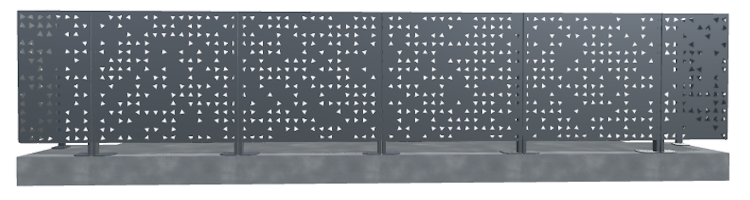Ces découpes géométriques sur panneaux métalliques aux contours triangulaires et symétriques, ajoutent une dynamique forte que l'on voit au contact de la clôture et puis se disipent avec la distance. En fonction du soleil qui traverse le panneau de clôture décorative, la tôle perforée projette un jeu d'ombres délicats qui accentue l'effet naturel et aléatoire des découpes, apportant au jardin une dimension abstraite captivante. Le moucharabieh aléatoire dépasse la perception unique d'une toile opaque de clôture. La découpe laser des centaines de triangles sur la tôle donne une connotation graphique étonnante. Il s'agit d'un prisme de lumière permettant de captiver les rayons du soleil avant de les retransmettre une fois filtrés en ombre projetée sur le sol. La distribution des découpes produit un effet de parcours vibrant. Le contraste de transprence et de luminosité permet d'utiliser les facettes de prisme au plus haut potentiel, donnant lieu à une perception de nouvelle de la profondeur. La position alétoire des prismes triangulaires pemet de protéger tout type d'espace grâce à son occultation en trompe l'oeil. L'occultation forte du moucharabieh métallique permet de cacher les espaces de stockage, des zones de gravats, des bâtiments techniques que l'on souhaite dissimuler par un écran fluide.Le conseil de l'équipe