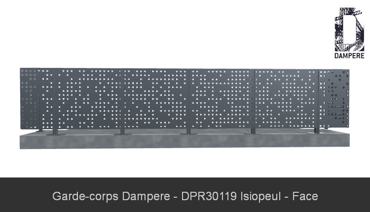 La tôle décorative Isiopeul pour habillage de garde corps de balcon évoque une distribution saisissante de formes triangulaires, des triangles isocèles de taille unique éparpillés sur une toile vierge, créant une composition abstraite et diffuse. Chaque découpe triangulaire semble avoir été déposée par un esprit mathématique précis, qui se trouve contraint à libérer une légère rotation sous la contrainte d'une force magnétique, conférant au dessin un effet calme et mystérieux. Le balcon se trouve habillé d'un panneau de remplissage de garde corps original.Usages