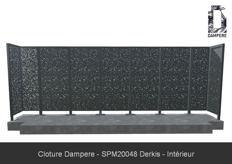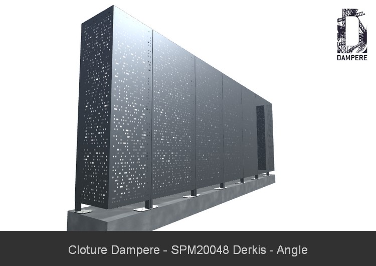 L'usage du motif DERKIS en panneau de clôture occultant se fait sur un panneau en Acier Galvanisé d'épaisseur 2 mm sur une hauteur de 1.80 m sera conseillée. Cette combinaison de la hauteur du poteau et l'entraxe entre panneau donneront une bonne résistance de la clôture décorative, que vous adapterez à l'ancrage au sol selon la zone de vent et la sollicitation urbaine de la clôture. Le passage d'air réduit augmente la prise au vent dans les régions fortement exposées.Détails techniques