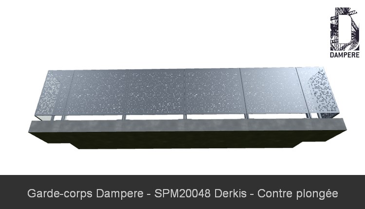 Pour assurer une bonne tenue mécanique du remplissage en résille métallique du garde corps Derkis, notre BE vous conseille la tôle découpe laser en Acier Galvanisé en épaisseur 15/10 ème, répondant à la norme de sécurité garde corps NF P 01- 013, tenant compte de l'essai destructif au sac par charge dynamique de choc par corps mou de diamètre médian M50 / 600 Joules spécifiant un impact au centre géométrique du panneau moucharabieh de garde corps.Opacité du balcon