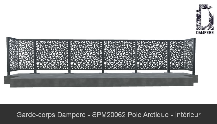 Le garde corps en formes découpées au laser Pole Arctique DAMPERE s'utilise pour des projets de logement haut de gamme ou des prestations pour des bureaux de luxe. Un beau rendu qui s'associe bien avec des revêtements de sol en bois exotique.Effet produit